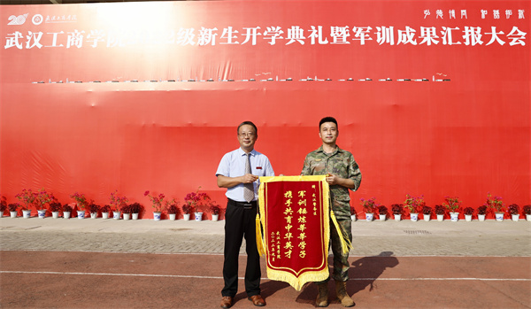 左宗文副书记代表学校向承训部队赠送锦旗,感谢其精心组织、周密安排,感谢教官们的严格要求、一丝不苟。