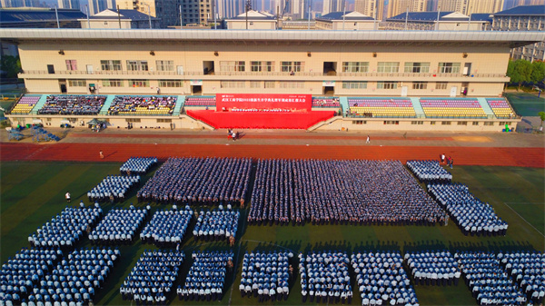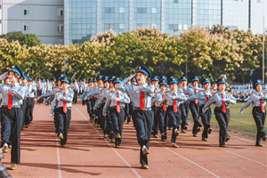 21个方阵依次走过主席台接受检阅,他们队列整齐、步伐矫健、精神抖擞、英姿飒爽,充分展现了刚毅果敢的军人气质和自强不息的武工商人精神风貌,为大学第一课递交了一份满意的答卷。