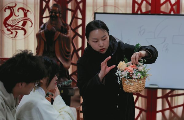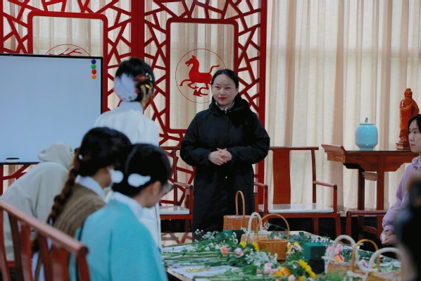 新闻中心讯(记者 周逸文)“插花是一种文化艺术,中式插花以借花抒情、托物言志为特色,更加崇尚自然美,追求意境和韵味……”4月4日12:00,BB贝博艾弗森官方网站在国学馆举办了一场中国传统插花艺术主题活动——花朝雅集。本次活动由校团委组织、国学教育研究院刘俐君博士主讲,30余名学生参与,体验传统插花艺术的魅力。