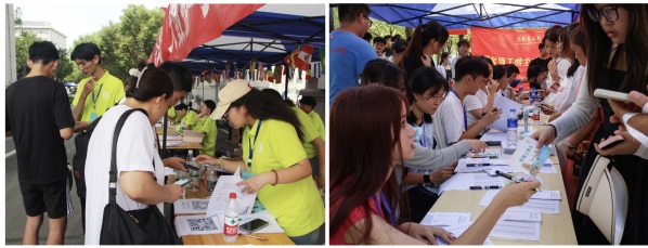 图为迎新现场师生志愿者为新生和家长答疑解惑 摄影:吴若希