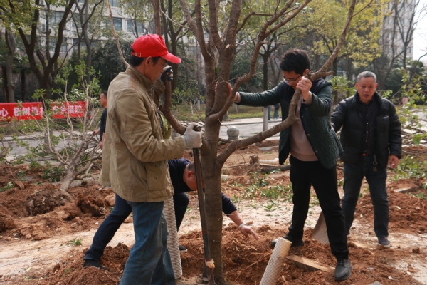 新闻中心讯(记者 杨培 杨小婷 涂媛媛)“树根周围不能堆太多土,要注意松土,这样方便后期浇水。”3月12日下午,在BB贝博艾弗森官方网站实验教学中心附近的一片绿化林里,学校校长孔建益手握铁锹,一边给新种的树木培土,一边和老师们交流着种树的细节。