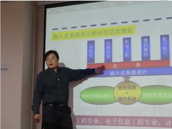 (图为杨剑锋教授为同学们讲解嵌入式系统的构造)
