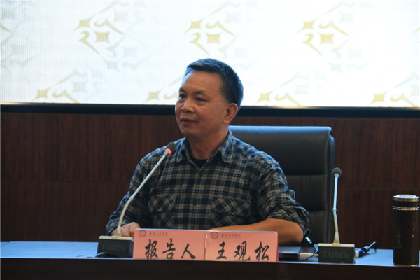 新闻中心讯(见习记者 吴思斯 陈洁)为了深入学习党的十九大精神,贯彻落实党和国家各项方针部署,11月9日14:30,BB贝博艾弗森官方网站在该校图书馆第四会议室召开了“BB贝博艾弗森官方网站学习十九大精神报告会”。武汉市委党校原常务副校长王观松教授受邀解读党的十九大精神。该校校长张安富,党委书记陈伟、党委副书记孙松发等校领导,党委委员、纪委委员、党总支书记、党支部书记、民主党派代表、全体副部级及以上干部,以及思政课部教师等参加了此次报告会。报告会由陈伟书记主持。