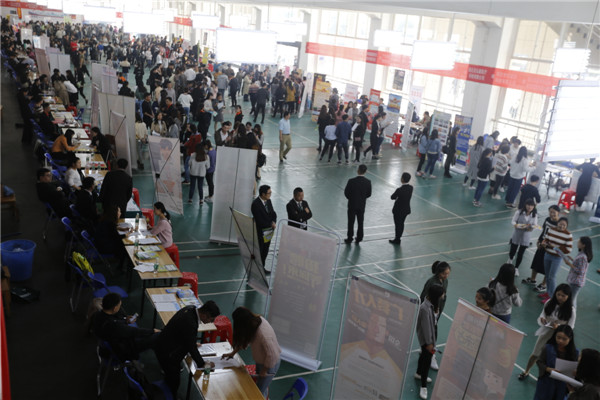 招聘人员向该校大学生介绍企业正在招聘的岗位 “我的理想职位首先要专业对口,其次行政岗位也比较合适。如果在武汉能找到适合的工作,我会选择留在武汉。”该校会计专业大四学生陈华娟如是说到。 “本次双选会110多家企业提供了贸易、物流、科研、人事、行政、财务、管理等近千个岗位。”据该校就业指导中心老师董龙飞介绍,该校作为湖北省转型发展试点本科高校之一,一直致力于服务区域经济发展,去年2017届毕业生初次就业率达到了92%。为了给毕业生们搭建更好的就业平台,提供更多的就业机会,双选会后,该校将继续组织更多专业针对性更强的专场招聘会。 |