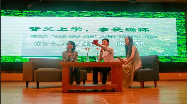原本陈春林有一个幸福美满的家庭,可惜天降横祸,先是母亲突发脑溢血猝然离世,不久父亲又突发脑梗瘫痪在床。面对突发的家庭变故,善良、坚强的她用自己瘦小的身躯毅然挑起生活的重担。为了继续完成学业和照顾好病瘫在床的父亲,2013年年仅16岁的陈春林决定背上父亲去上中学,一边读书,一边照顾父亲。如此坚持了5年,2017年陈春林被华中师范大学录取,便开始了背着父亲上大学的生活。回忆自己的坎坷之路,陈春林笑着说,自己必须成长。她还向大家分享道:“人生虽有苦难,但不要被困难所吓到,要调整好自己的心态,积极地面对。等待时间的推移,你会发现那段时光是宝贵的财富。”“在我的成长过程中,接受过很多人的帮助。我不想仅仅用语言来表达对他们的感激。未来,我将带着大家的祝福和帮助一直努力下去。希望我能够成为一名人民教师,把老师和同学们的关爱继续传递下去。”最后,陈伟书记总结道:“陈春林的家庭遭遇很不幸,她的孝心孝行和乐观精神很可敬,社会和爱心人士给予她的帮助很可贵。”他说:“小春林对待生活,有一份坚韧、坚守,相信这些都会让她的人生之路更加顺利。在座的同学们要趁着自己还年轻,赶快对父母表达自己的孝心,做出成绩,让家长骄傲。”