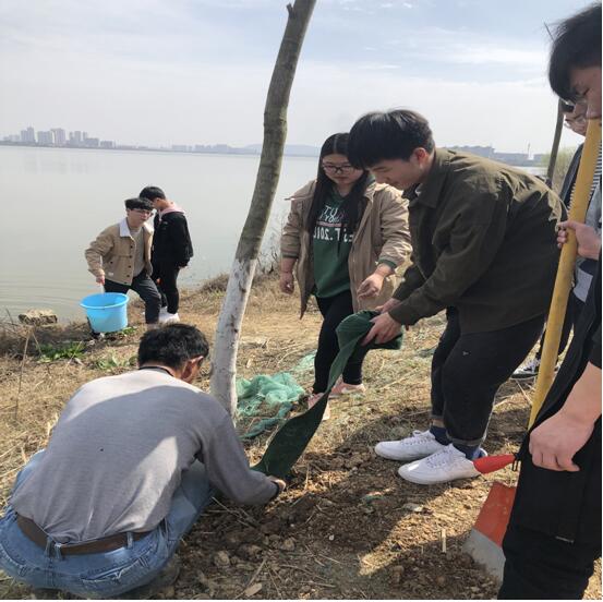 信息工程学院党总支书记、分团委书记以及辅导员和学生代表参加了此次植树节活动。学生们拎着捅,扛着锹,满怀期待的加入这场植树节活动中来。他们齐心协力,有的扶树苗,有的培土,有的浇水,忙的不亦乐乎。虽素未接触此类活动,但他们热情澎湃,积极工作,将一棵棵树苗埋在了土里。其中一名志愿者感慨道:“希望我种下的这颗树苗能在黄家湖畔茁壮成长,为我校的绿色校园建设贡献力量。”经过近2个小时的努力,黄家湖畔形成了一道亮丽的风景,湖边竖起了一棵棵小树,大家都憧憬着它们茁壮成长,开枝散叶。