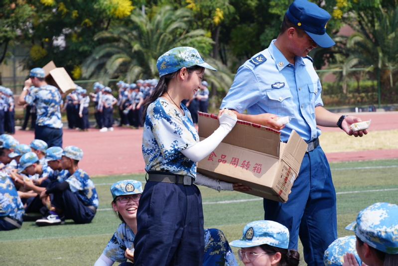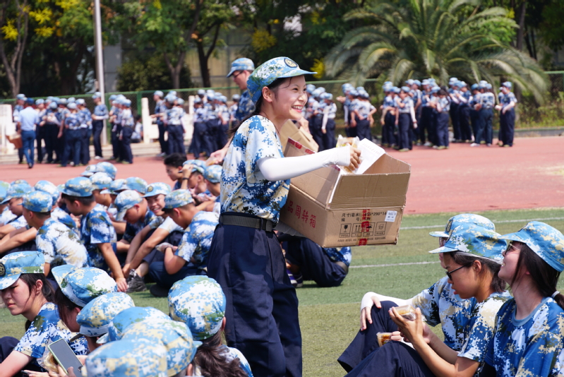 “学校每年都会给参加军训的新生发月饼,一方面是为了弘扬中华民族的传统文化,将节日的氛围传送给学生,另一方面希望能够将学校的关爱传达给学生,让学生在学校也能度过一个温馨的节日”,学工部张颖老师介绍道。