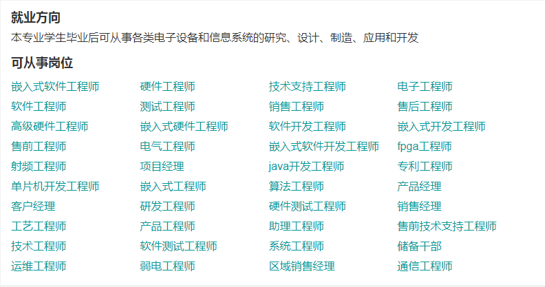 核心课程:C语言程序设计、电路分析基础、模拟电子技术、数字电路、信号与系统、单片机技术及其应用、数字信号处理、自动控制原理、通信原理等。
