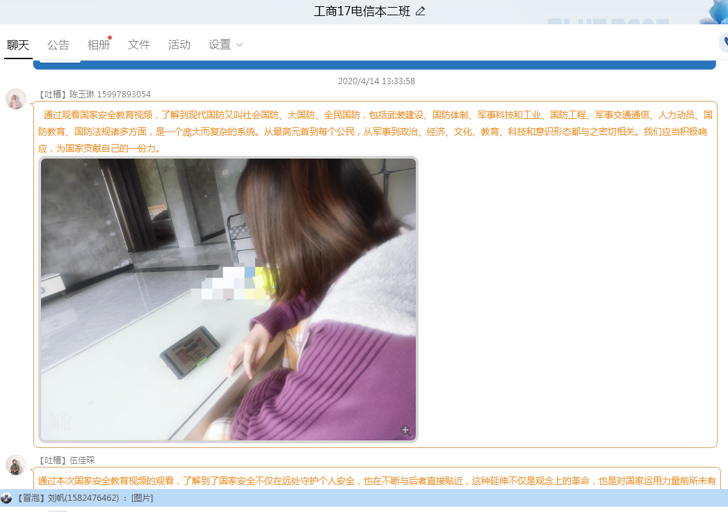 2020年4月14日-15日,人工智能学院党总支组织全院师生,通过观看公开课和视频直播,参与在线问答和云班会等形式,开展“全民国家安全教育日”宣传教育活动,涵养师生国家安全意识,活动引发师生热议。