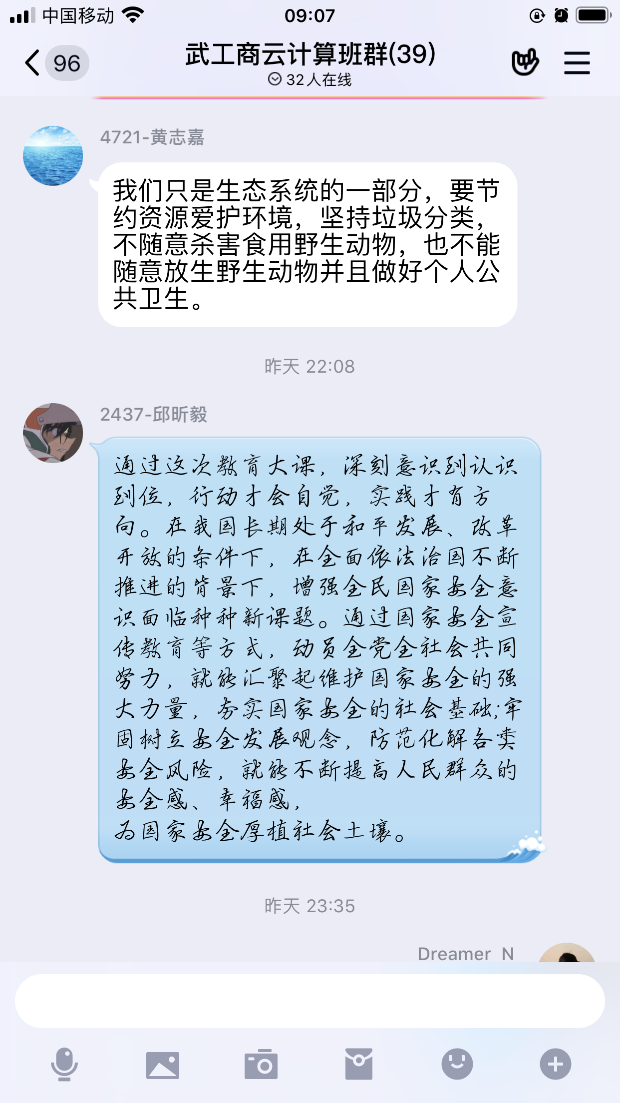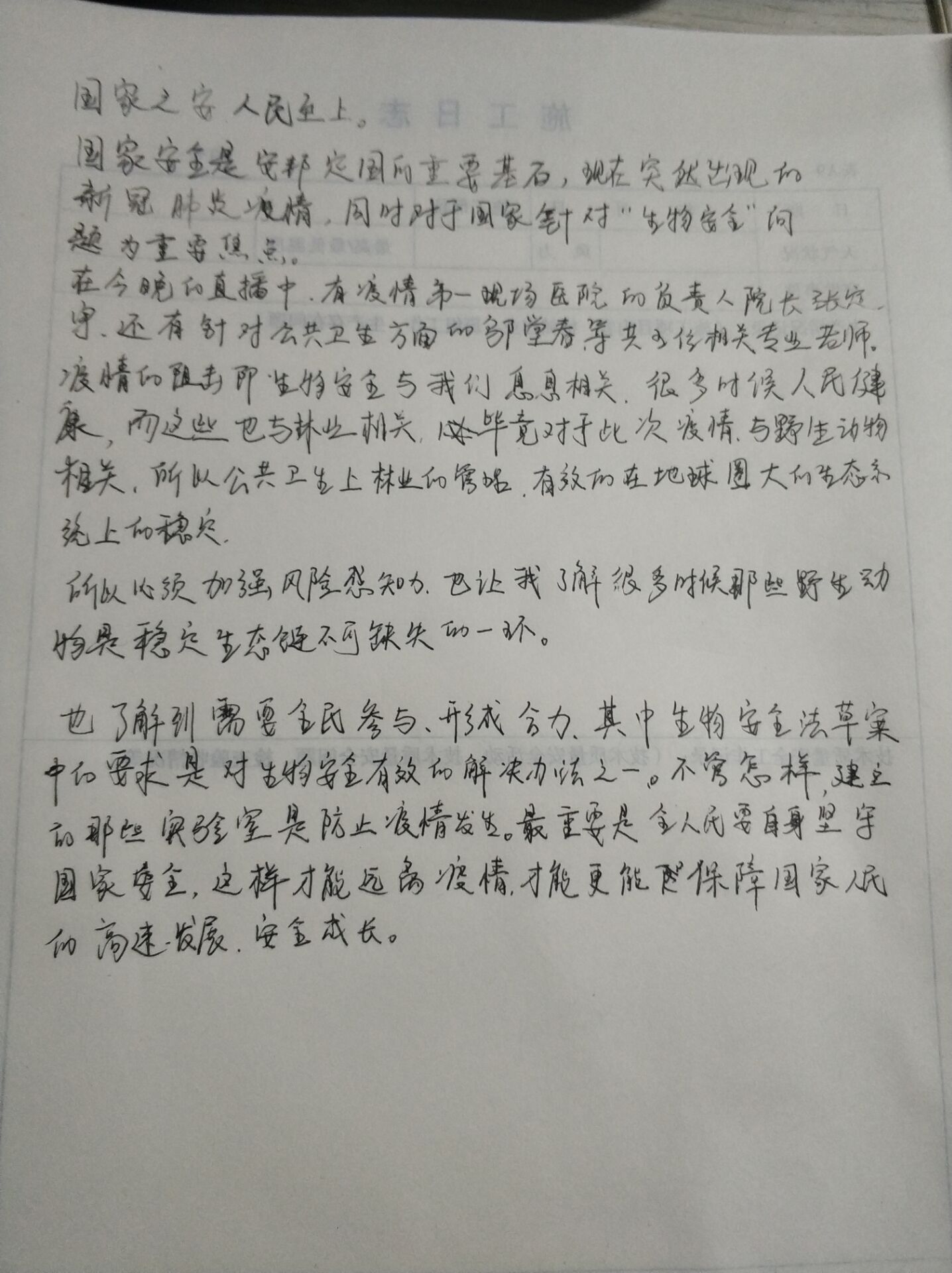 在第五个全民国家安全教育日来临之际。我和千万同学同上一堂国家安全教育课,这节课的主题是总体国家安全观视角下的疫情防控。通过学习使我受益匪浅。
