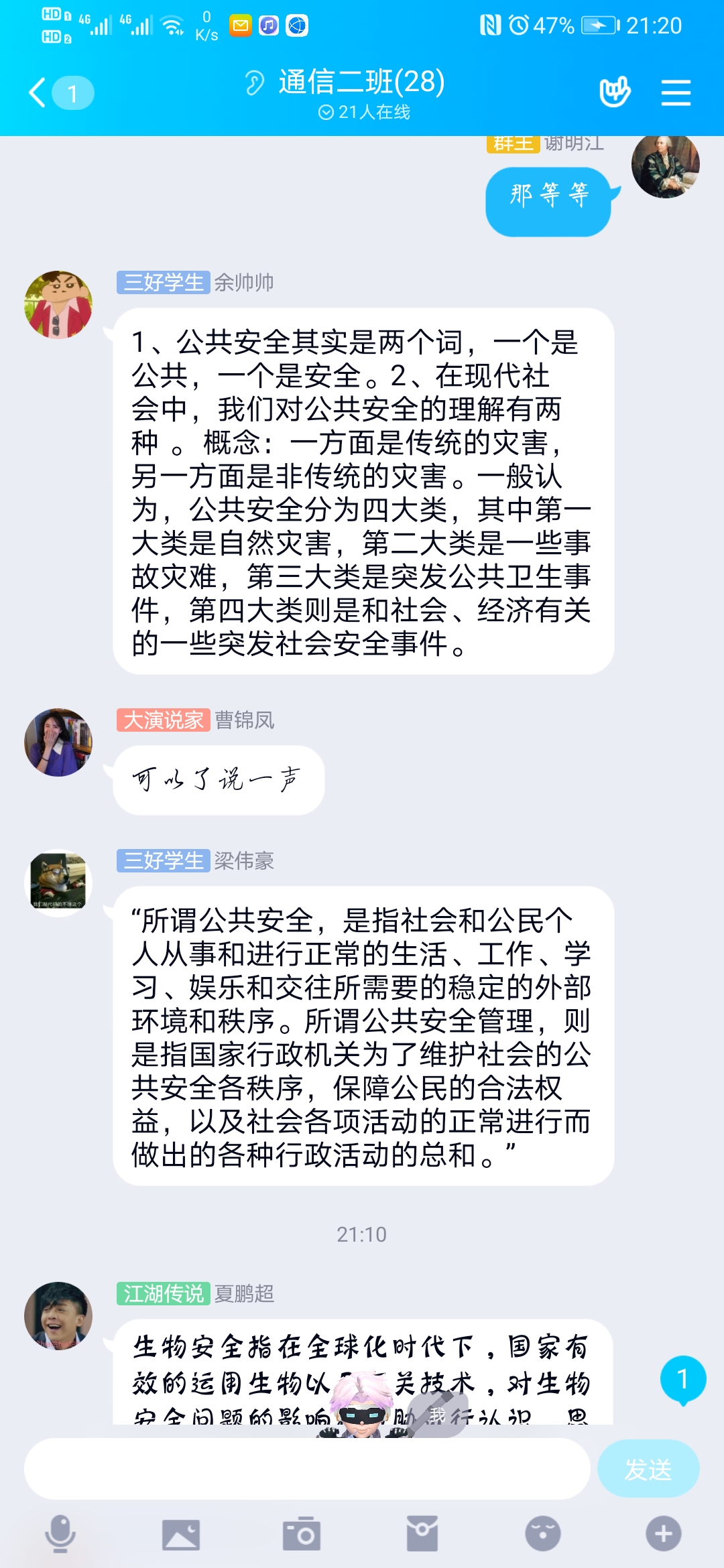 在这堂课之前,我理解的国家安全更多的是关于国家的主权和领土方面的。听完范教授的课之后,我觉得国家安全与人民安全是联系在一起的。我们生活中方方面面,都可能涉及到国家安全。让我印象深刻的还是公共卫生安全,因为新冠病毒至今还在危害我们的生活,这场疫情也给国家经济带来了巨大的打击,给国民生活也带来了影响。所以,我们以后要注意个人卫生安全,提升疫情识别能力,锻炼身体提高自身抵抗力。在这堂课上完之后,我发现,原来我们做的每一件事情,小则影响自己,大则可能影响到整个国家的安全。所以,做每一件事情都得从小做起,从细微抓起。这节“同上一堂课—国家安全教育课”真的让我受益匪浅。