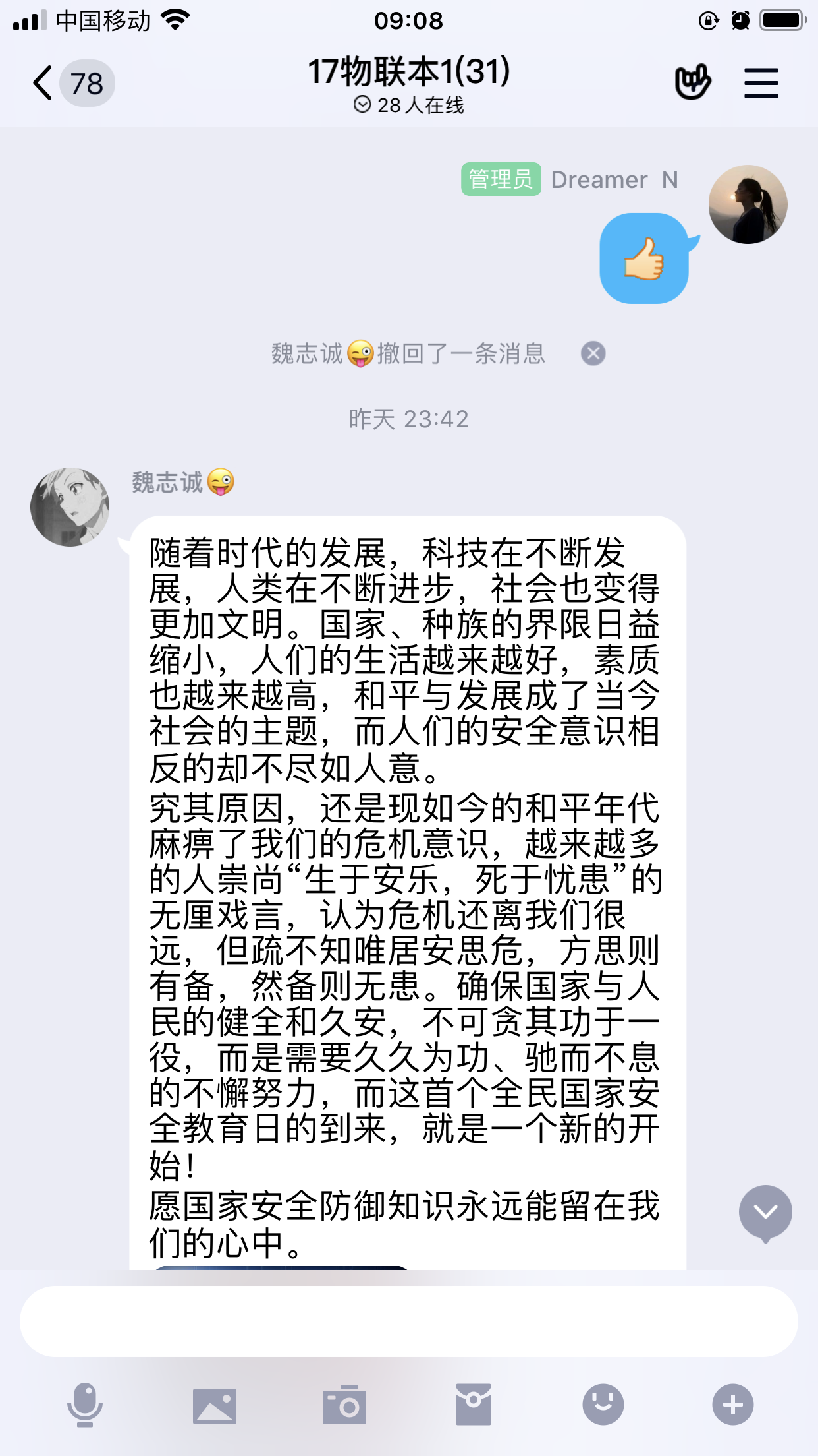 4月14日,我进行了国家安全教育日网络学习和知识竞赛答题。