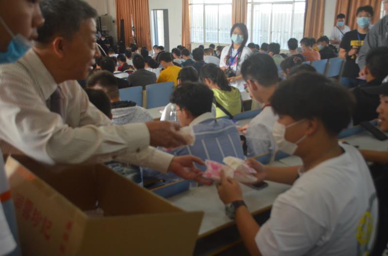 桂校长在跟学生们的交流中说到,突如其来的新冠疫情,让我们每个人更深切地体会到了身为一个中国人的自豪,希望同学们站在新的起点,尽快适应新环境,认真学习新知识,成为对国家对社会有用的人才。随后,与会的各位领导深入学生中,亲手将月饼送给2020级新生。
