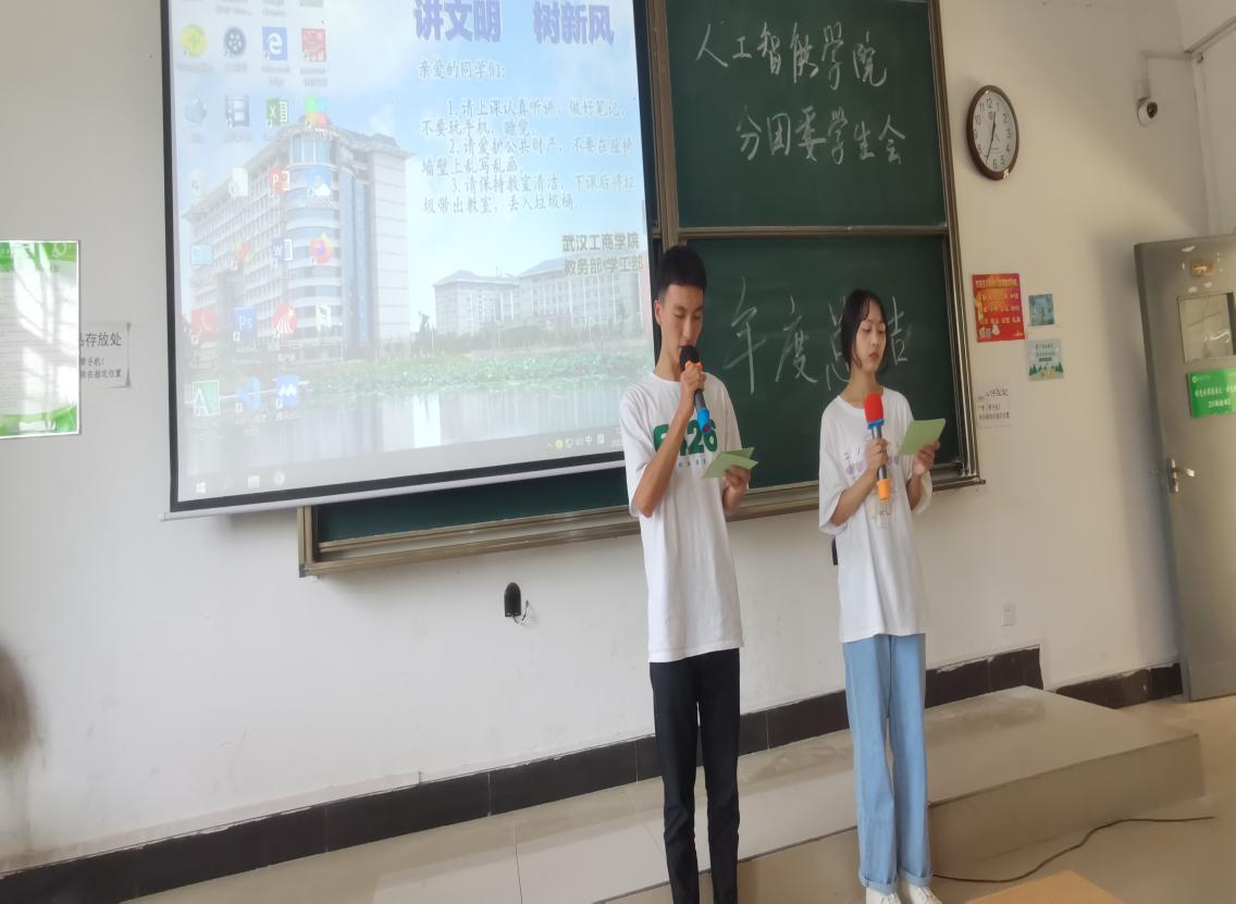 人工智能学院学生会于5月30日中午在综合楼201开展了人工智能学院年终总结大会。参加会议的有人工智能学院党总支书记吴茜、人工智能学院分团委书记肖宁以及全体学生会成员。