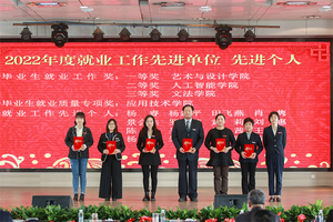 随后,2022年度总结表彰大会举行。李副校长、张俊副校长等领导宣读了《关于2022年学校荣获市级以上奖项和项目情况的通报》《关于2022年校级表彰情况的通报》。学校领导分别为30个奖项获奖的单位和个人颁奖。其中,4个国家级一流本科专业建设点分别奖励80万元。