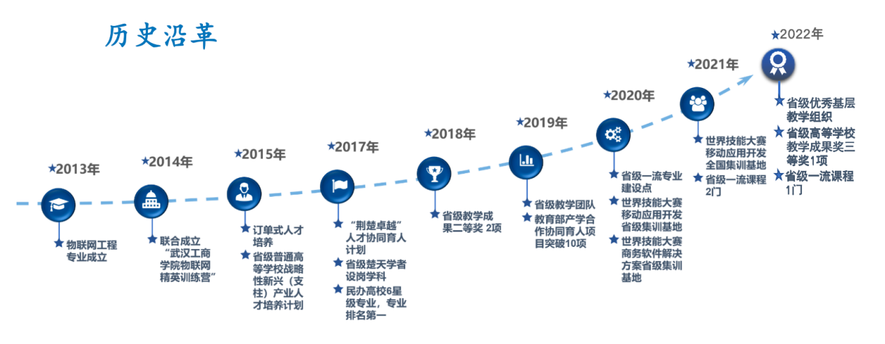 ①专业建设:物联网工程专业立项为省战略新兴人才培养计划项目,“荆楚卓越人才”协同育人计划项目,获省级一流本科专业建设点。2018-2023年连续多年获评中国校友会网六星级专业,全国同类高校排名第一。