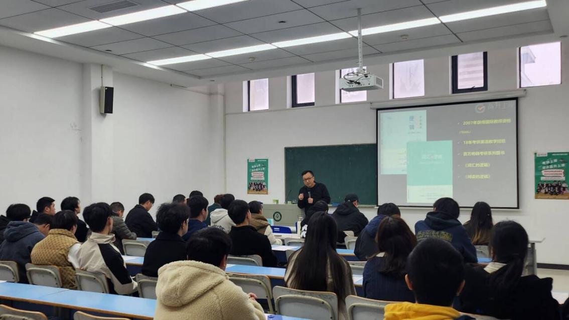 (通讯员 柴梦鸽 吴艳)为帮助学生更好地备战研究生入学考试,提高考研英语备考效率,11月20日中午12时,著名考研英语讲师唐迟应邀来到我院,为全体考研学子带来了一场生动而实用的备考讲座。本次活动由人工智能学院考研工作联合机构主办,地点15栋322,众多考研学生踊跃参与,现场座无虚席。