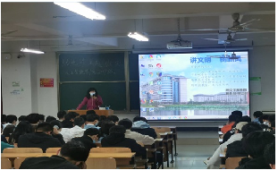 图为辅导员吴雅雅进行树立正确就业观讲座现场