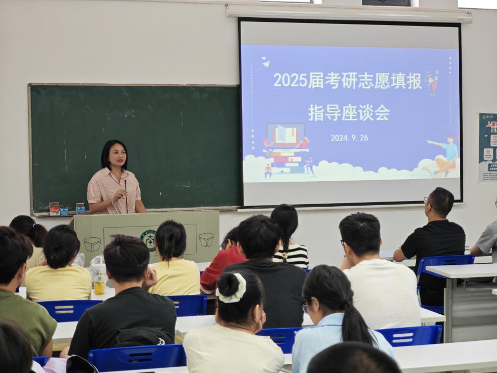 (通讯员:尹静 吴艳)2025年全国硕士研究生招生考试正式报名启动在即,为提高2025届考研学子的考研成功率,实现科学、精准报考,促进学院优良学风形成,9月26日,人工智能学院在15栋322会议室召开考研志愿填报指导交流会。党支部书记吴艳,教学副院长张婷、考研指导小组教师以及考研学生共同参加此次交流会。交流会由考研指导小组组长尹静主持。