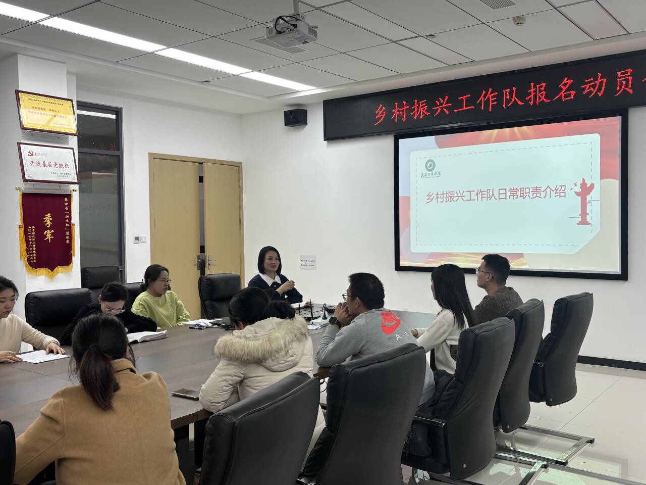 (通讯员 吴艳 袁亮)近日,人工智能学院在学院会议室隆重举办乡村振兴工作队队员报名动员会议,为明年的队员选派工作进行动员。此次会议由学院党总支书记吴艳主持,科研副院长彭敏、新教师代表以及行政教辅代表等多位教职工参会。