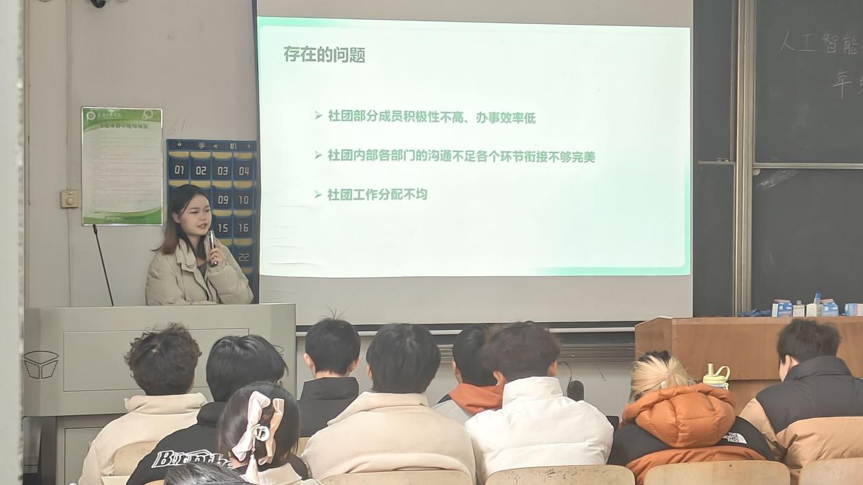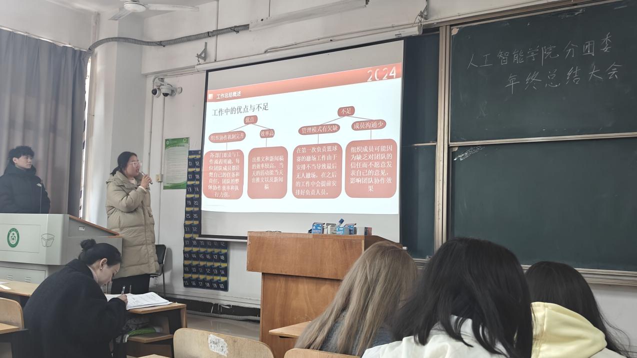 20241218日,人工智能学院开展了分团委年终总结大会。本次活动由人工智能学院学生会团组团宣青协等部门成员参与,旨在总结一年的工作成果,交流过去工作过程中存在的问题以及所获得的经验,并2025年各组织开展得活动进行规划