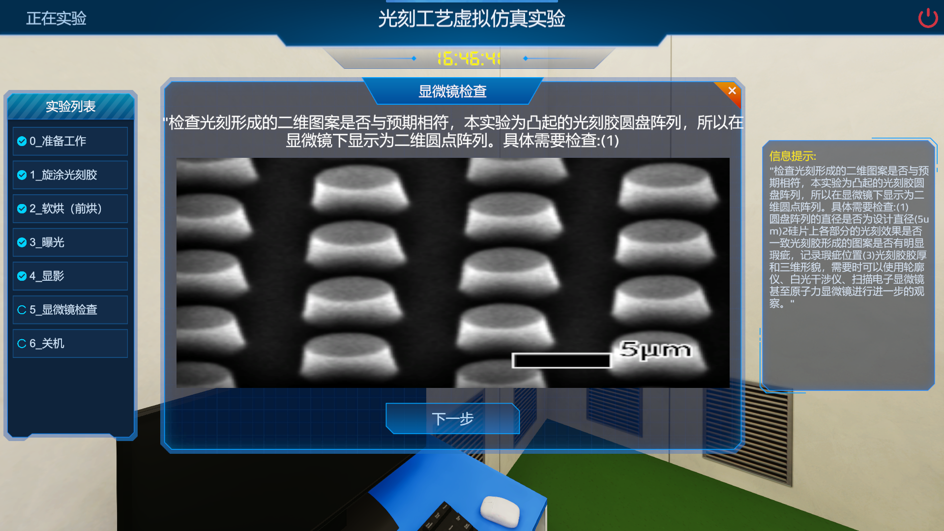 集成电路虚拟仿真教学系通用于《微电子工艺原理及应用》和《微电子封装与测试》课程的实验教学,通过在虚拟仿真软件模拟工艺流程,学生能对工艺流程能有很清晰的了解。通过虚拟仿真平台上进行封装与测试操作,学生能较好的掌握封测的主要知识。下图是使用软件的界面: