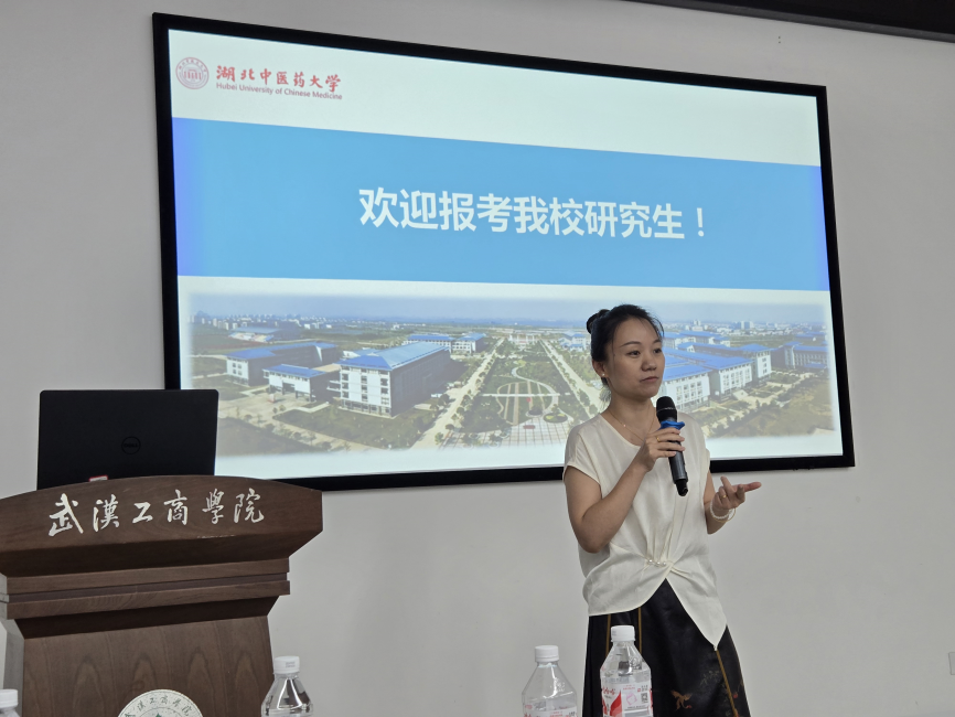 6月19日下午3:30,湖北中医药大学信息工程学院,硕士研究生导师、解丹教授应邀来到人工智能学院,在15栋314学术报告厅,为2026届有考研意向的学生作了“湖北中医药大学管理科学与工程学硕、电子信息专硕”专题宣讲会。人工智能学院副院长张婷、2026届考研指导工作组成员宫健丽、尹静、胡定兴参加了此次讲座。