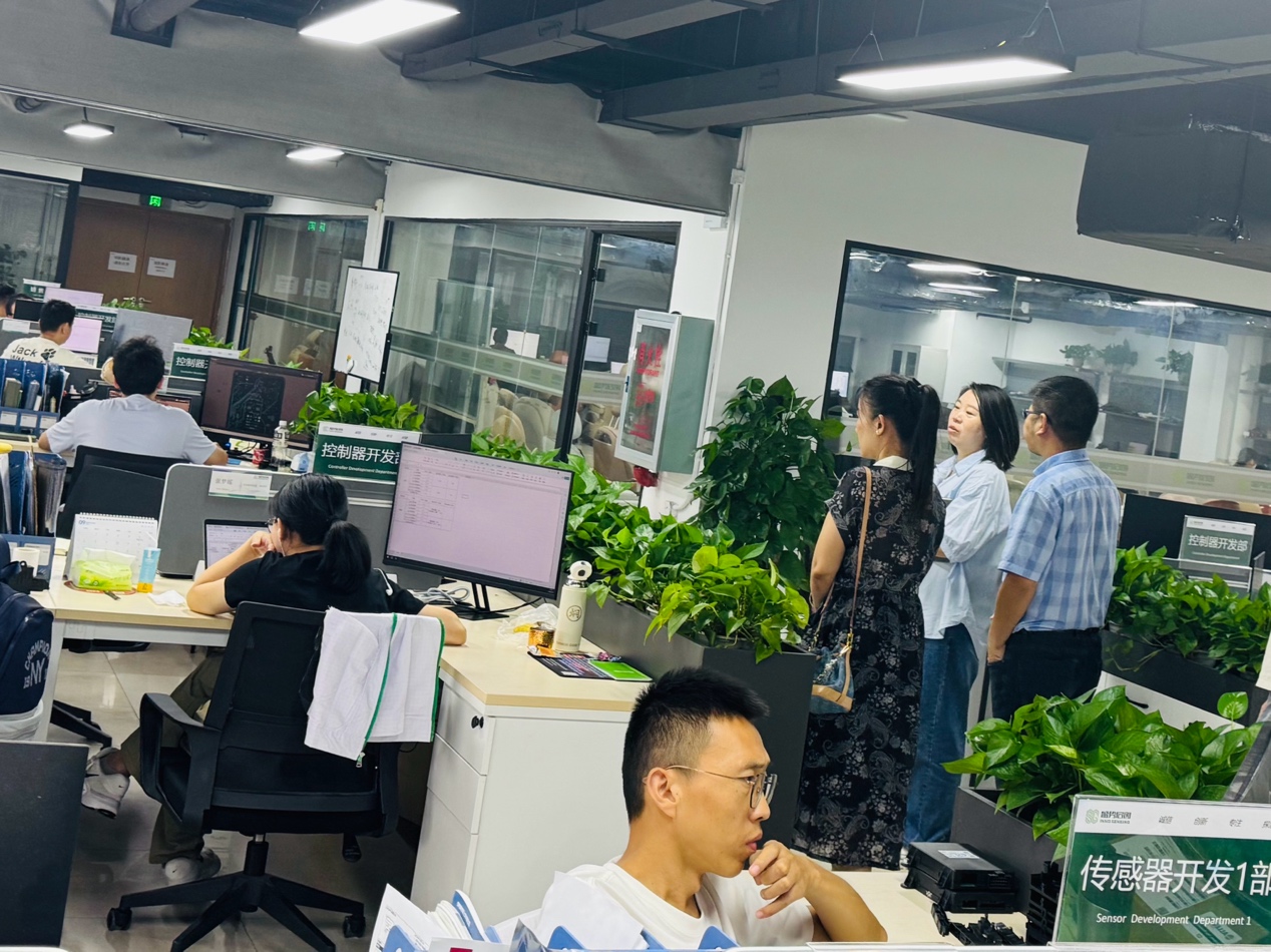 在盛势启创人事专员孟晓花的陪同下,老师们参观了公司的研发中心、测试中心、生产车间和专利墙,深入了解了企业的技术研发实力、生产流程及创新成果。通过实地参观,老师们对企业的产业需求有了更直观的认识,为后续优化教学内容提供了参考。