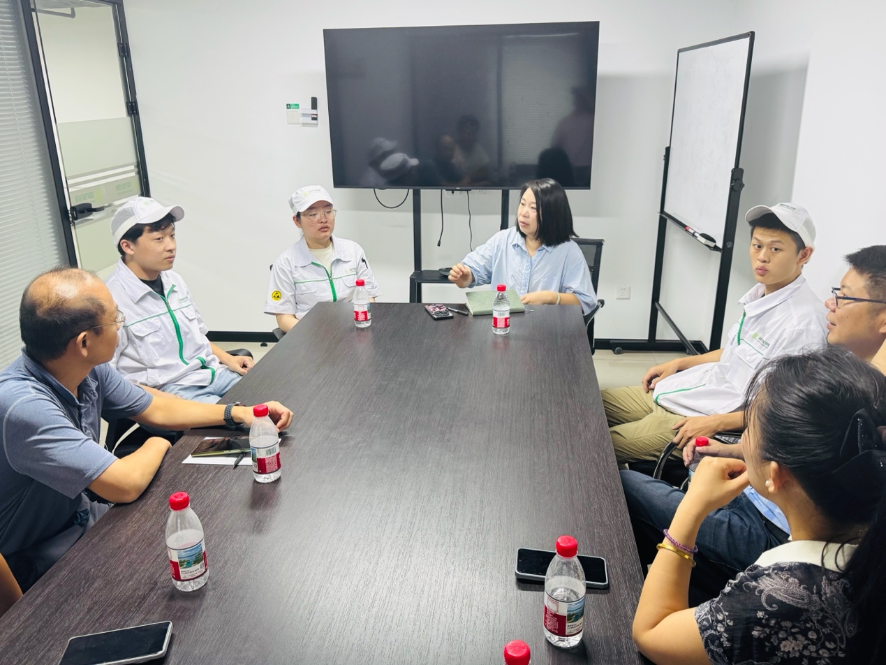 在盛势启创人事专员孟晓花的陪同下,老师们参观了公司的研发中心、测试中心、生产车间和专利墙,深入了解了企业的技术研发实力、生产流程及创新成果。通过实地参观,老师们对企业的产业需求有了更直观的认识,为后续优化教学内容提供了参考。