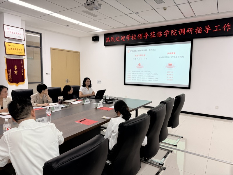 学院党总支书记吴艳就党建工作进行汇报。她指出,学院在教职工党员发展数量和党建品牌凝练方面还存在不足,并表示将积极发展入党积极分子,结合学院人工智能特色,打造具有辨识度和影响力的党建品牌项目,通过校企联建、师生党支部结对等活动,提升党建工作的整体水平和辐射效应。