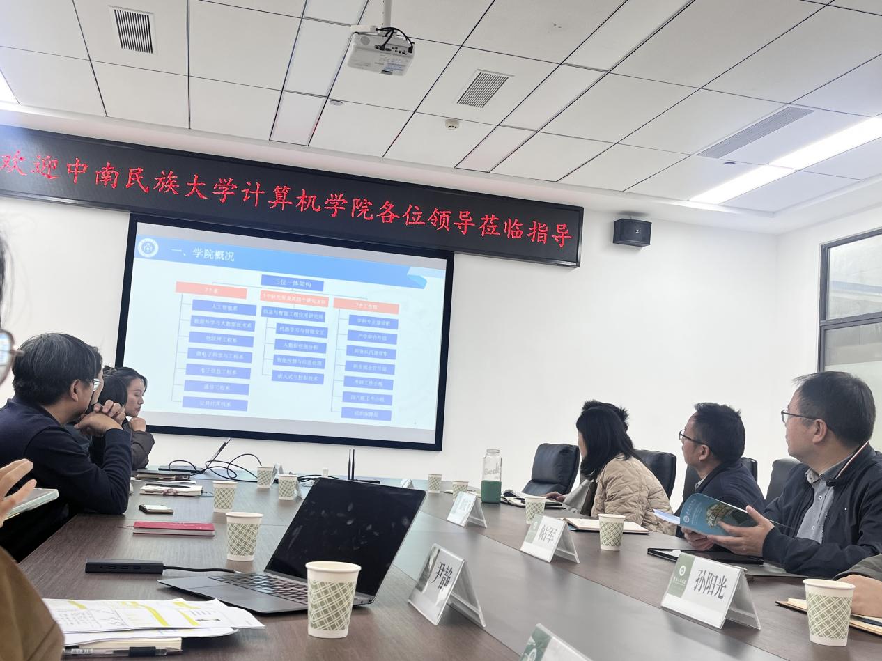 随后,张院长就我院学院架构、师生规模及主要成果进行了汇报,与中南民族大学计算机学院各领导进行了交流探讨。