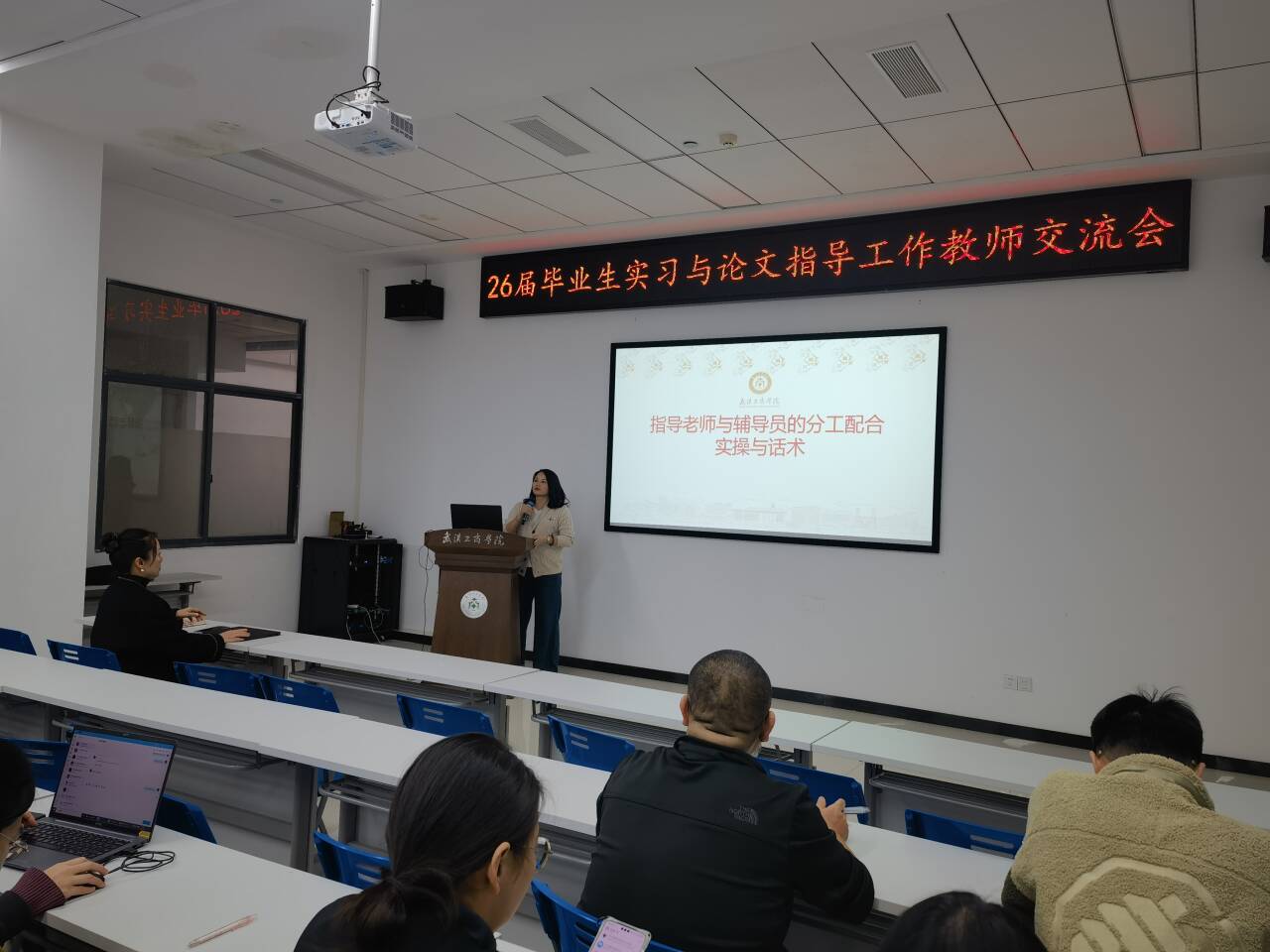 随后,学院邀请了近两年的三位优秀实习指导教师进行了实习就业指导的经验分享。分类指导,精准施策。对考研学生指导的时候,帮助他们进行选校选专业,结合学生成绩和兴趣制定个性化复习计划,定期检查进度,在关键节点心理疏导,帮助学生克服焦虑。定期沟通解决困难,保持学习动力。对考公学生指导可以帮助其进行岗位分析与选择,并结合专业匹配度和地域需求。帮助学生心态调整与目标树立,避免盲目跟风。除此之外,还要进行真实性审核,确保学生真正投入备考。对就业学生的指导,需要提前开展就业指导,春节后立即启动简历投递,帮助学生完善简历制作与投递策略,提高面试机会。对学生进行面试技巧与职场礼仪培训。引导学生对自己合理定位,做好职业规划,鼓励先就业再择业。此外,还要关注特殊学生群体,提供针对性帮扶。