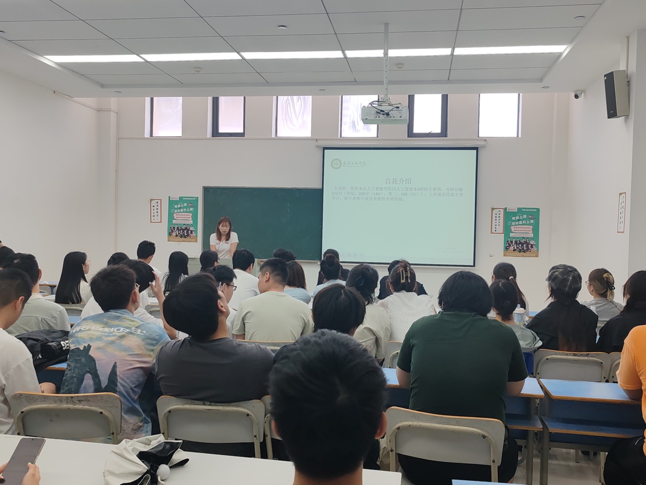 10月11日,一场备受瞩目的考研经验分享会在人工智能学院322教室成功举办。此次活动特别邀请了四位2021级成功考取硕士研究生的优秀校友代表——潘登、王梦琪、覃超和孙思雯,他们分别被上海大学、南京信息工程大学、阜阳师范大学、中南民族大学等高校录取,为正在准备考研的学弟学妹们带来了宝贵的经验和指导以及心路历程。