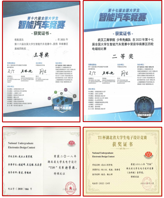 多年来,本专业组织学生参加各项技能竞赛,学生的实践和创新能力也得到显著提升,柯希望等同学在“全国软件和信息技术专业人才大赛国赛(电子类)”等各级竞赛中获得国家级奖励20余项、获得省部级奖励70余项,张剑锋等同学在湖北省大学生电子设计“TI杯”竞赛获得特等奖。