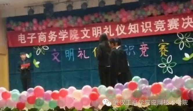 应用技术学院记者团(邓筱妩 讯)2015年11月27日晚七点,BB贝博艾弗森官方网站电子商务院系为响应社会讲文明晓礼仪的口号,开展了文明礼仪知识竞赛活动。竞赛初始,各院系的代表队做了生动活泼的自我介绍。我们在艺术与设计学院代表队温暖而有力量的诗歌朗诵中感受到了青春的脉动;在应用与技术学院代表队简洁而铿锵有力的致词中感受到了青春的朝气蓬勃:在文法学院代表队激情而欢快的歌声中感受到了青春的欢愉幸福……短短的自我介绍瞬间点燃了全场热烈的气氛,我们对此次竞赛充满了期待。在一片欢呼声中,竞赛正式开始。