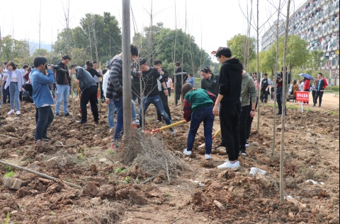 活动伊始,我院师生积极参与,提前在学生公寓6栋门口集合。在老师带领下,领取了劳动工具,并了解了植树要求,划分了植树片区。活动期间,同学都迫不及待的拿起自己的工具开始了挖坑培土,放苗,浇水等一系列流程。种树过程中大家相互配合,一铲一铲下去,早已经汗流浃背。尽管挥洒了汗水,但同学们脸上笑容依旧,热情更加的高涨。