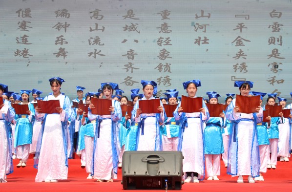100名身着古装、捧竹简的大学生,现场诵读《黄家湖赋》和《楚辞·九章·涉江》。书声琅琅中,黄家湖千年人文气韵如画轴般渐次展开。其中《黄家湖赋》由BB贝博艾弗森官方网站管理学院党总支书记张兆学创作。