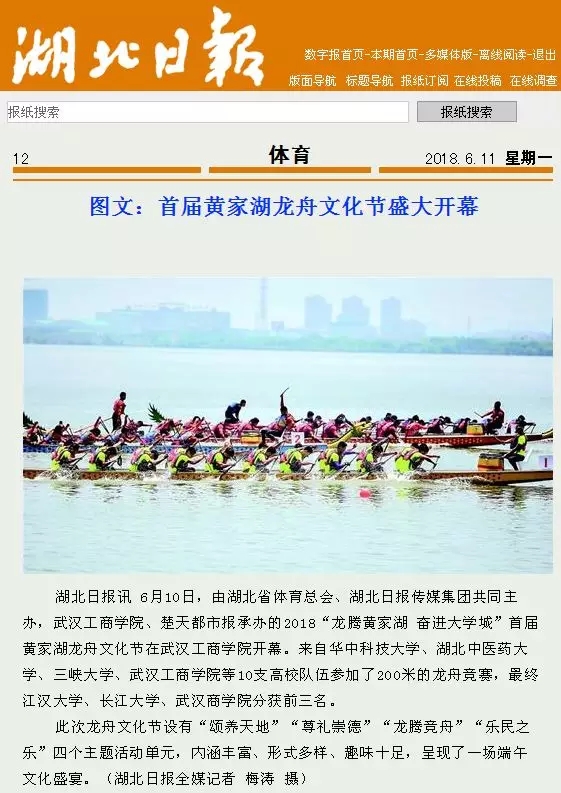 大美黄家湖,极目楚天舒。本届龙舟文化节盛况空前,得到社会各界的热情支持与积极参与,宣传报道媒体的层级高,报道力度大、形式多样,传播范围广,传播效果显著,充分展现了学校深厚的人文底蕴与广大师生的精神风貌。