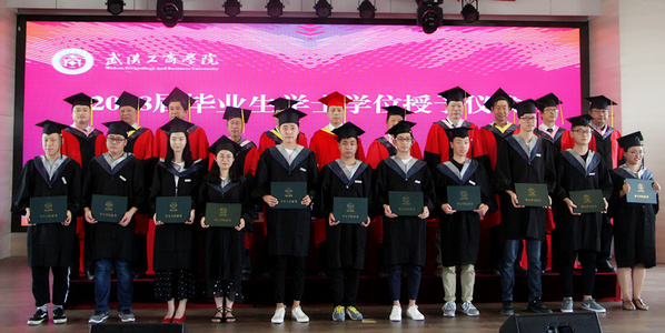 最后,学校学士学位评定委员会全体成员为获得学士学位的毕业生代表一一拨穗,授予学位并合影留念。