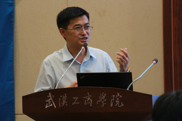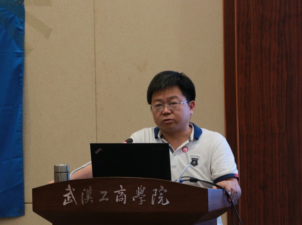 图为武汉大学计算机学院副院长吴黎兵教授作报告 摄影:黄娟