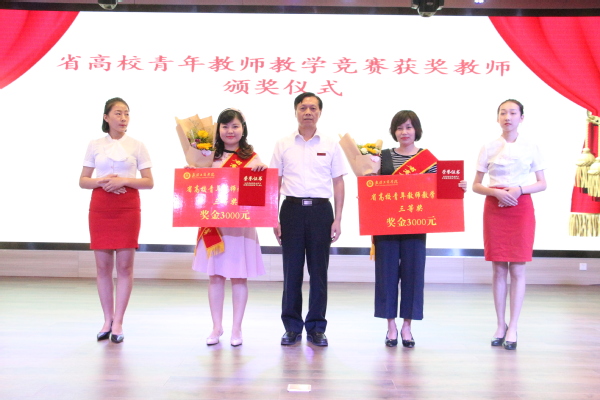 图为夏再兴副校长、张俊副校长为“工商好老师”获得者颁奖 摄影:孙欢欢