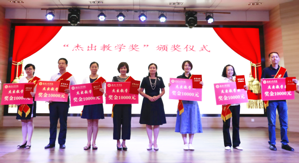 图为彭秀春董事长为杰出教学奖获得者颁奖 摄影:孙欢欢