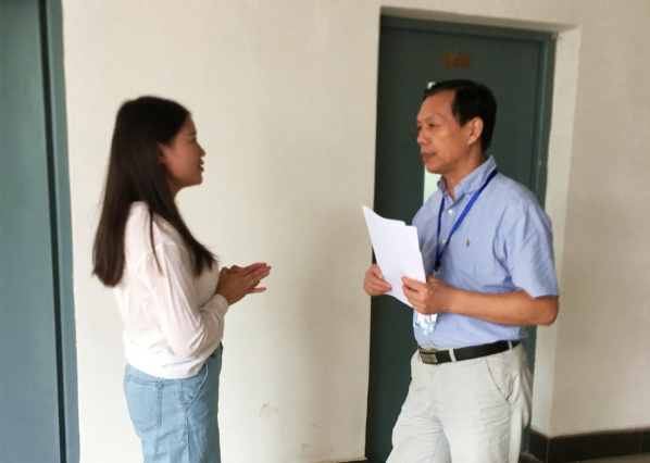 图为课后张安富校长正在与张老师交流 摄影:北辰
