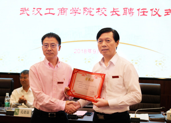 9月30日上午11:30,BB贝博艾弗森官方网站新任校长聘任仪式在学校图书馆会议室举行。武汉科技大学党委书记孔建益,武汉弘博集团有限责任公司董事长、党委书记巴能军,BB贝博艾弗森官方网站董事长彭秀春、副董事长邹继康,原校长张安富,新任校长、原武汉科技大学副校长陈奎生,党委书记陈伟,副校长桂裕清、夏再兴、张俊等校领导,以及学校全体中层干部出席了聘任仪式。聘任仪式由陈伟书记主持。