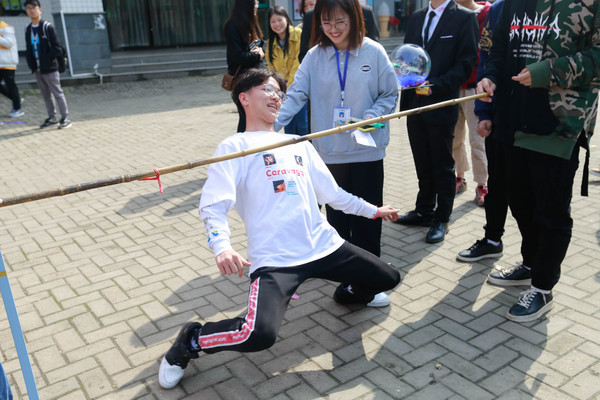 在艺术楼主干道上,“你和我的七彩时光”也在火热进行着。在这里,同学们热情参与背对背拥爆气球、七彩心愿树、寻觅宝物、蒙眼游戏等富有创新与活力的活动,尽显青春飞扬的花样年华。
