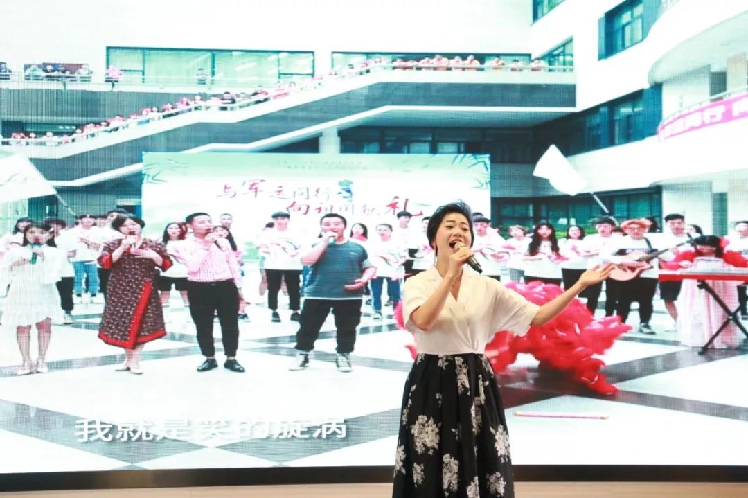 大会现场,学校老师邹青还演唱了热血澎湃的歌曲《我和我的祖国》,宣传策划部学生带来了深情的诗歌朗诵《我的国我的家》,引得全场掌声雷动。