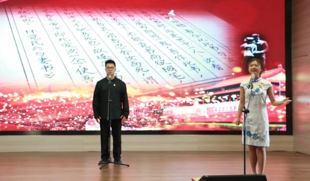 大会现场,学校老师邹青还演唱了热血澎湃的歌曲《我和我的祖国》,宣传策划部学生带来了深情的诗歌朗诵《我的国我的家》,引得全场掌声雷动。