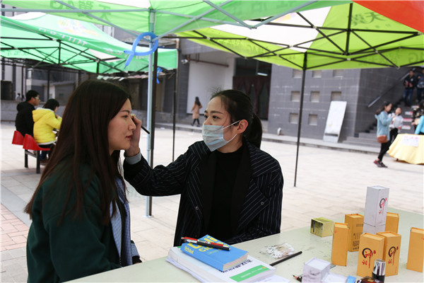 “最近《三生三世 十里桃花》热播,我们学院男生就想了这样一条创意标语,祝福女生们能够像仙女一样,永远美丽。”管理学院学生会主席赵龙说道。