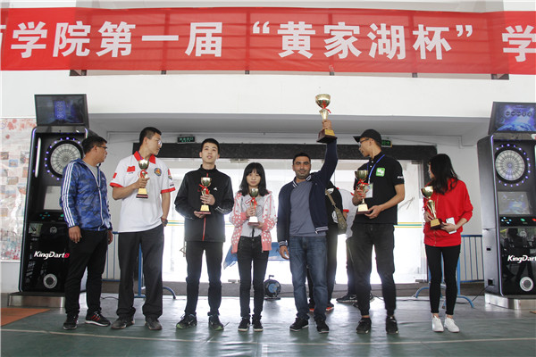新闻中心讯(记者 聂本固)“瞄准,投镖!”,4月27日下午,BB贝博艾弗森官方网站体育馆现场不时传来一阵阵欢呼声,原来该校第一届“黄家湖杯”学生飞镖比赛正在此紧张进行中。全校共有11个学院派代表参与个人赛与团体赛的角逐,比赛还吸引了国际教育学院的几名外国留学生参赛。