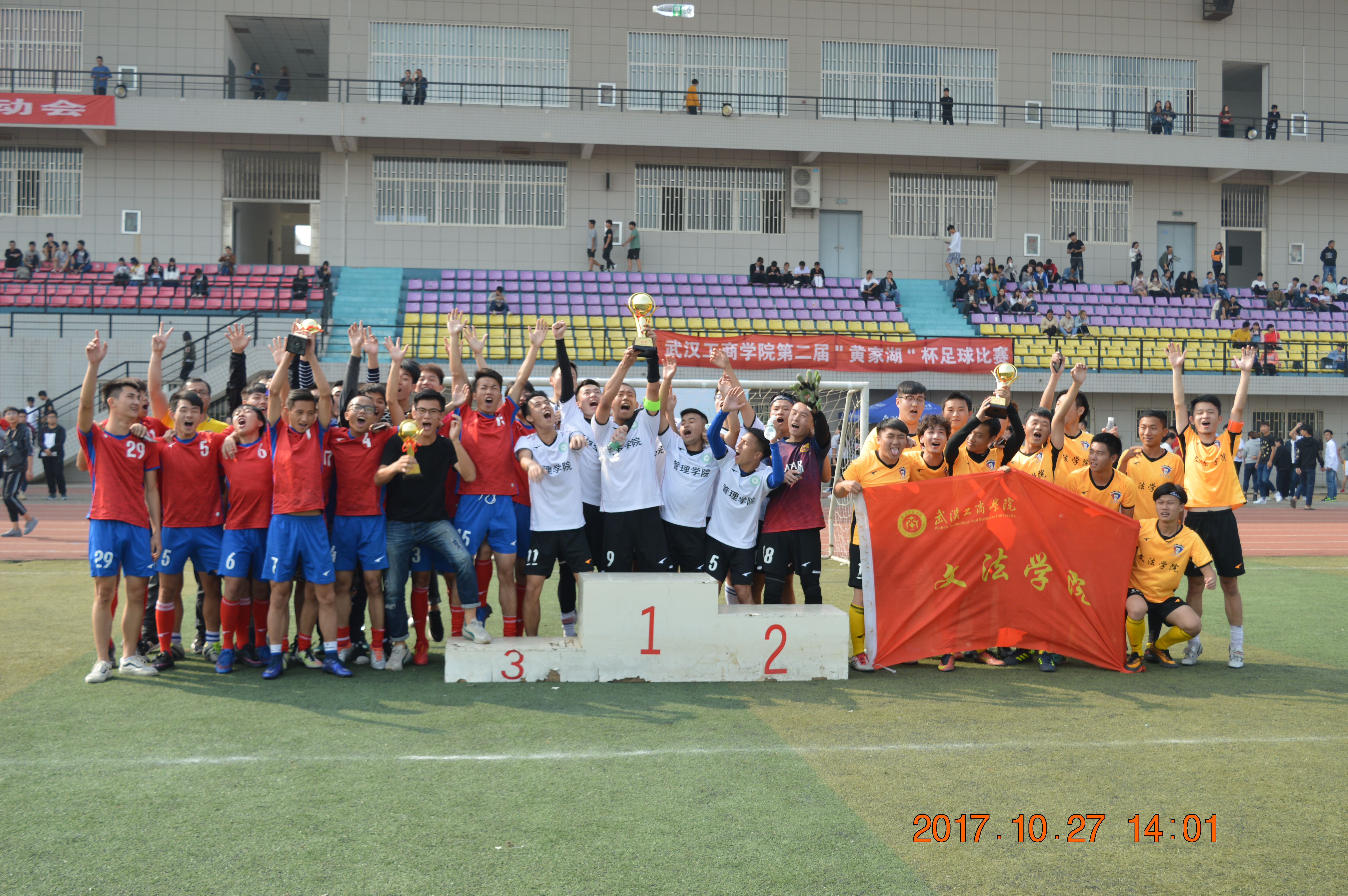 28日中午12:30,经过一天半紧张激烈的比赛后,该校第十三届田径运动会正式落幕。运动会总裁判长李高升老师宣布了本次比赛的最终结果,学生男子团体总分前六甲的分别是:应用技术学院、信息工程学院、管理学院、经济与商务外语学院、电子商务学院、文法学院;学生女子团体总分前六甲的分别是:管理学院、经济与商务外语学院、电子商务学院、物流学院、环境与生物工程学院、文法学院;学生集体项目团体总分前六甲的分别是:经济与商务外语学院、电子商务学院、管理学院、应用技术学院、文法学院、民族教育学院;团体总分前六甲的分别是管理学院、经济与商务外语学院、电子商务学院、应用技术学院、信息工程学院、文法学院;获得精神文明奖的五个学院分别是:物流学院、艺术与设计学院、环境与生物工程学院、民族教育学院、继续教育学院。